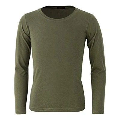 Panzy® Girls Long Sleeve Plain Basic 100% Cotton Top Kids T Shirt Tops Crew Uniform Tee (5/6 yrs, Olive Green)