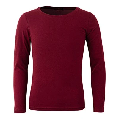 Panzy® Girls Long Sleeve Plain Basic Cotton (95%) Top Kids T Shirt Tops Crew Uniform Tee (4/5 yrs, Maroon)