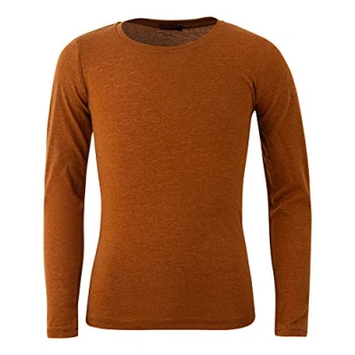 Panzy® Girls Long Sleeve Plain Basic Cotton (95%) Top Kids T Shirt Tops Crew Uniform Tee (9/10 yrs, Rust)