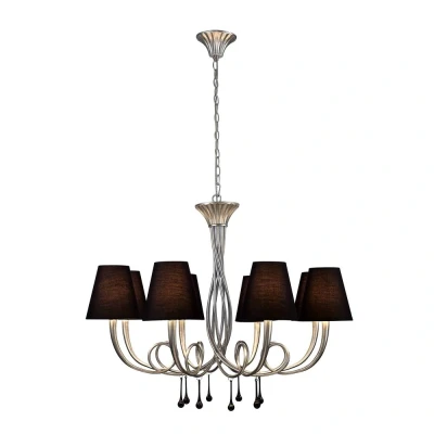 Paola Ceiling Pendant 95cm Round, 8 x E14 (Max 40W), Silver Painting, Black Shades