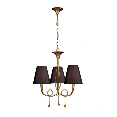 Paola Pendant 3 Light E14 Gold Painted With Black Shades & Amber Glass Droplets Mantra