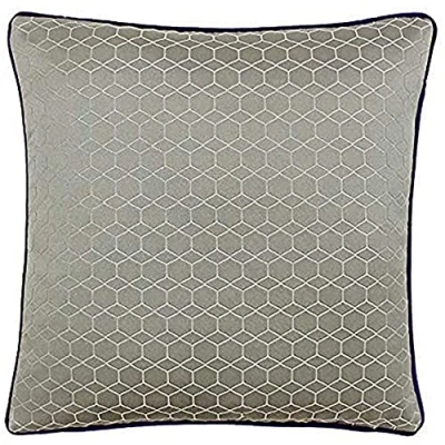 Created with a high-density jacquard weave in a striking geometric hexagonal design Complete with purple piped edges and a hidden zip closure Expertly crafted with 58% linen and 42% polyester this cushion is durable and practical Insert not included. Cushion cover will fit size 45 x 45cm (18" x 18") inserts or try slightly larger For extra plumpness Dry clean only. Use a cool iron and lay flat to dry