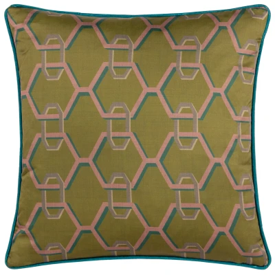 Paoletti Carnaby Chain Geometric Satin Cushion Cover Olive Size 45 cm x