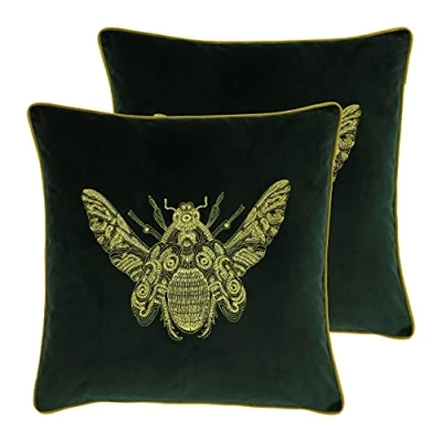 Featuring a beautifully detailed, embroidered gold bee with matching piped edges. Presented on super soft velvet fabric in richly opulent colours. Made of 100% polyester these cushion are hard-wearing and don't stain easily. Dry clean only. Tumble dry on a low setting and iron as appropriate. Inserts Included.