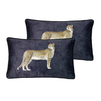 Paoletti Cheetah Forest Polyester Filled Cushions (Twin Pack), Navy, 30 x 50cm