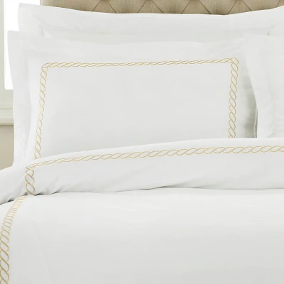The Cleopatra Pillowcase features a rope embroidered border on a crisp white background. Made of 100% cotton with a 200 thread count making this hotel-quality pillowcase amazingly soft. This pillowcase has an envelope closure and opulent oxford border detailing. Cleopatra is fully machine washable and suitable for ironing.