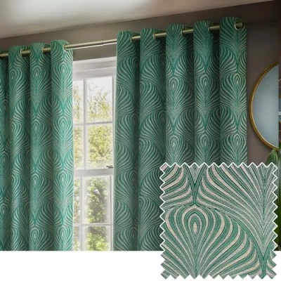 AmazonFeaturing an Art Nouveau geometric inspired design, woven on an opulent jacquard fabric. Lined with room darkening qualities and finished with eyelet rings for easy hanging. Made using 100% Polyester, this fabric is super soft yet durable and does not stain easily. Pair with the Gatsby cushion for a luxurious coordinated look. Dry Clean and Do Not Iron Only.