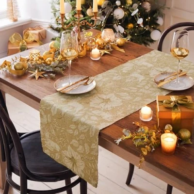 Amazon MarketplaceFeaturing a clear digitally printed design of blooming florals, set among strutting and crouching stags, against a rich golden background. Made of 100% Woven Polyester fabric, this table runner is durable and hard-wearing. Available in two sizes. Machine Washable, Line Dry and Do Not Iron Only.
