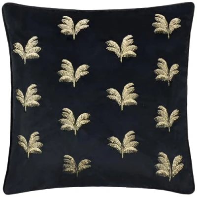 Paoletti Guilded Palms Embroidered Polyester Filled Cushion Black 45x45cm