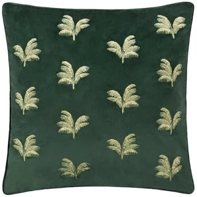 Paoletti Guilded Palms Embroidered Feather Filled Cushion Emerald 45x45cm