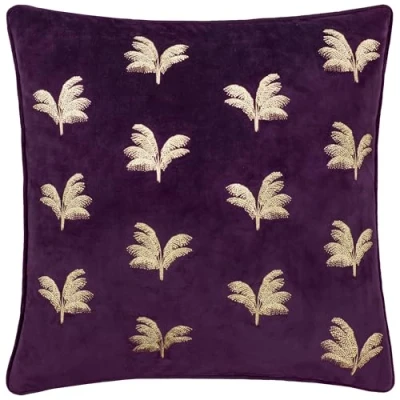 Paoletti Guilded Palms Embroidered Feather Filled Cushion Plum 45x45cm