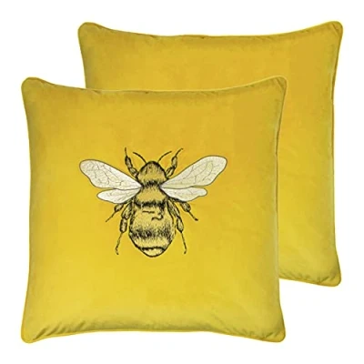 Featuring a luxuriously embroidered Bee on soft velvet fabric. Complete with a soft velvet reverse, coordinating velvet piping and hidden zip closure. Made of 100% Polyester, these cushions are super soft yet durable. Dry Clean and Cool Iron Only. Inserts Included.
