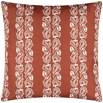 Featuring a smart, decorative paisley floral striped pattern, set against a bold contrast background and in a range of rich, bold colours. Complete with an inverted colour design, knife edge finish and zip fastening. Made of UV and water resistant Polyester fabric, this outdoor cushion is designed to withstand sunshine, showers and spills. Sponge Clean Only, Line Dry and Do Not Iron. Designed, printed and made in the UK.