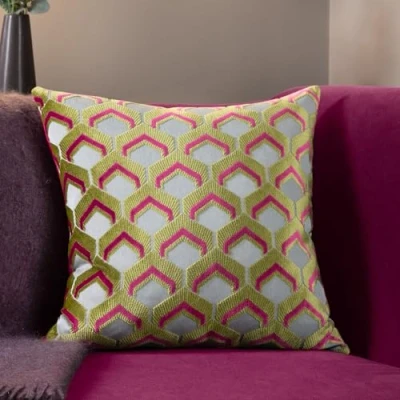 Featuring a velvet jacquard geometric pattern set on a soft jersey-look base. Complete with a contrasting soft velvet reverse, knife edge trim and hidden zip fastening. Made from 100% Polyester fabric, this cushion is super soft yet durable. Dry Clean and Do Not Iron Only.