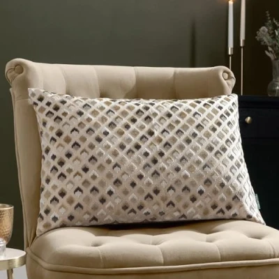 Featuring a velvet jacquard geometric pattern set on a soft jersey-look base. Complete with a contrasting soft velvet reverse, knife edge trim and hidden zip fastening. Made from 100% Polyester fabric, this cushion is super soft yet durable. Dry Clean and Do Not Iron Only.