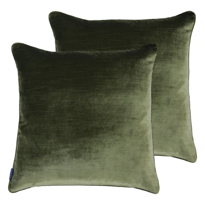 Paoletti Luxe Velvet Twin Pack Polyester Filled Cushions, Olive, 55 x 55cm