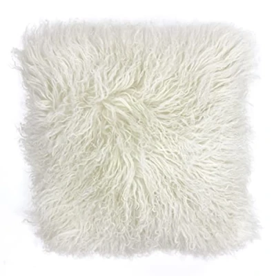 Paoletti Mongolian Cushion White Wool Size 40 cm x