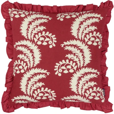 In deep, rich, trending tones the Montrose cushion is adorned with printed sweeping leaves and berries to create a modern luxury feel to this exquisitely designed piece. Surrounding the face is a pleated fringed trim to give the design extra gravitas, as it sits proudly on your soft furnishings. An ideal cushion for adding a piece of contemporary class to your residence.