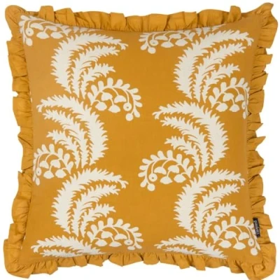 In deep, rich, trending tones the Montrose cushion is adorned with printed sweeping leaves and berries to create a modern luxury feel to this exquisitely designed piece. Surrounding the face is a pleated fringed trim to give the design extra gravitas, as it sits proudly on your soft furnishings. An ideal cushion for adding a piece of contemporary class to your residence.