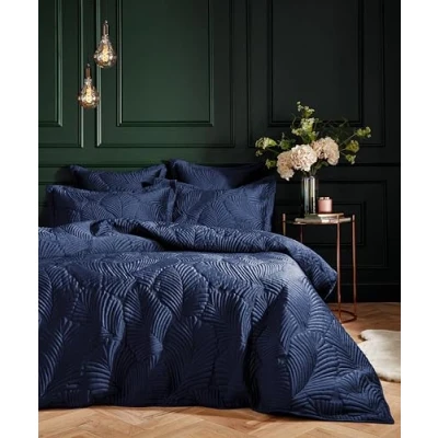 Paoletti Palmeria Quilted Duvet Cover, Polyester, Navy, Single