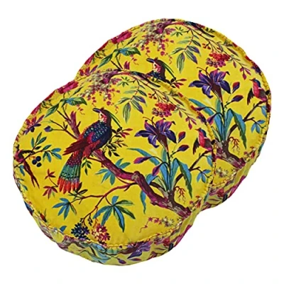 Paoletti Paradise Round Cushions (Twin Pack) Yellow Cotton Size 50 cm x 12