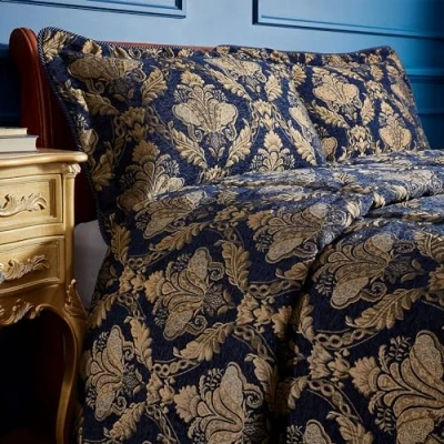 Amazon MarketplaceFloral jacquard design in rich navy blue with gold detailing. Large oxford border with an envelope closure. Gold reverse and navy blue piped border.