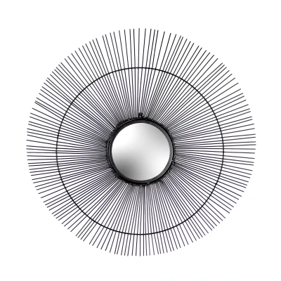 A uniquely designed decorative round mirror, surrounded by a sunburst-style matt black wire design. The deliberately offset look not only creates intrigue, but makes it a piece of art in its own right. A great versatile addition to any stylish contemporary home where it will look fabulous in the room of your choice.