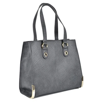 Arizona ladies stylish handbag Large carry handles with stud fastening main compartment 2 interior zip pockets, 2 open pockets and 1 outer zip pocket Fully lined Grey PU leather with gold metal details A stylish addition to your wardrobe