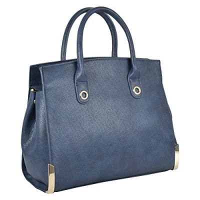 Georgia ladies stylish handbag Carry handles and detachable cross-body strap 2 open and 1 zip interior pockets and 1 outer zip pocket Fully lined Navy PU leather with gold metal details A stylish addition to your wardrobe