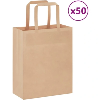 Paper Bags 50 pcs with Handles Brown 18x8x22 cm vidaXL