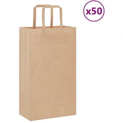 ManoManoGeneral description The paper bags offer a sustainable packaging option for a wide variety of uses. Made from durable and recyclable kraft paper, these bags can withstand everyday use while helping to reduce plastic waste. They feature practical paper rope handles for easy transport and are versatile enough to be used as gift bags, party bags, shopping bags, takeaway bags, and waste bags. Additionally, they can be easily customized to match any theme or event. Technical specifications Colour: Brown Handle colour: Brown Material: 80g/sqm kraft paper Dimensions (without handles): 21 x 11 x 36 cm (L x W x H) Max. weight capacity (each): 6 kg With paper rope handles Delivery contains: 50 x Paper bag Other information