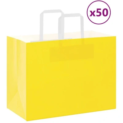 Paper Bags 50 pcs with Handles Yellow 32x17x25 cm Vidaxl