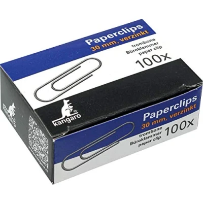 Paper Clips Kangaro 30 mm Round Box of 100 Zinc plated Kangaro Steel