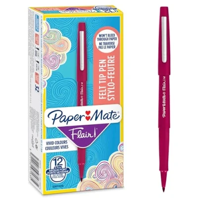 Paper Mate Flair Felt Tip Pens Medium Point (0.7 mm) Marker Magenta Red For Writing, Marking, Drawing & Sketching 12 Count