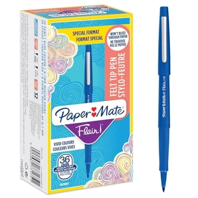 Paper Mate Flair Felt Tip Pens Medium Point (0.7 mm) Writing Blue For Writing, Drawing & Sketching 36 Count