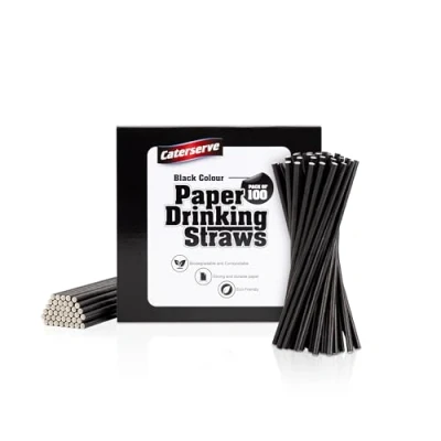 Paper Straws Multicolored Eco Friendly Alternative to Plastic 100% Biodegradable and Compostable Perfect for Drinking, Cocktails, Parties (100, Black)