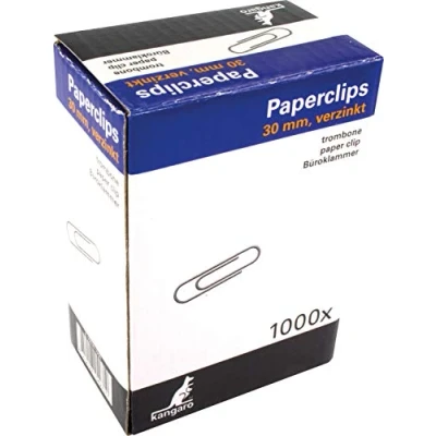 Paperclips Kangaro 30 mm Round Box of 1000 Zinc Plated Kangaro Steel