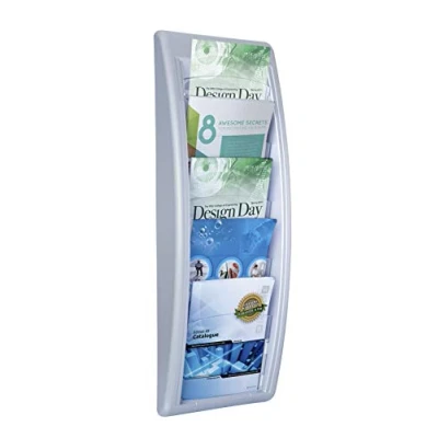 Paperflow Wall Mounted Brochure Racks, 5 Compartments For Size A5, Aluminium Silver, Pack Of 2