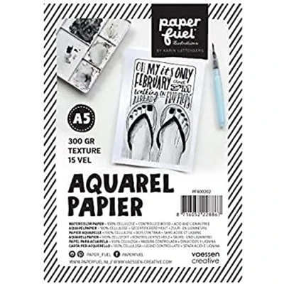 Paperfuel A5, White, 300gsm Textured Paper, Sheets for Watercolour Painting, Hand Brush Lettering, Wood, 15 STK