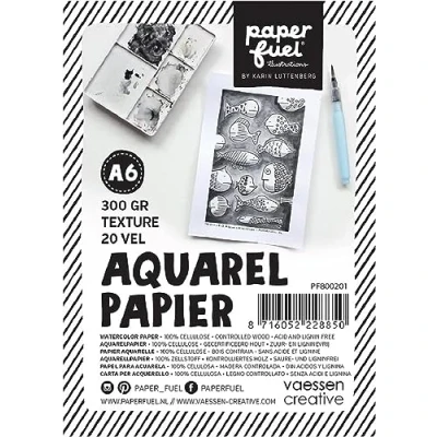 Paperfuel A6, White, 300gsm Textured Paper, Sheets for Watercolour Painting, Hand Brush Lettering, Wood, 20 STK