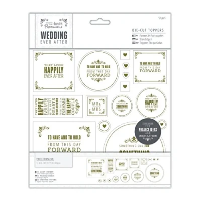Papermania 8 x Inch 5 Piece Toppers Wedding Die Cut, Gold/White