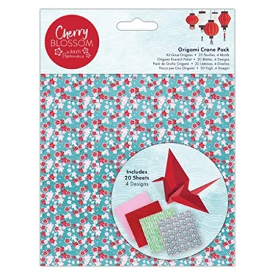 FUN - Have a go at the ever-popular art of origami with this wonderful pack IDEAL - The 150x150mm sheets are the perfect size for trying your hand at making origami cranes THEME - Cherry Blossom: Patterns, colours and designs synonymous with Japanese culture CONTAINS - 20 paper sheets in 150x150mm size, in 4 different designs RANGE - Also available in the Cherry Blossom collection are craft tape, paper pads, A4 decoupage pack and more!