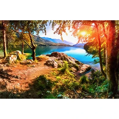 papermoon Picture Wallpaper Mountain Lake Painting Non Woven Photo Digital Print Including Paste Various Sizes
