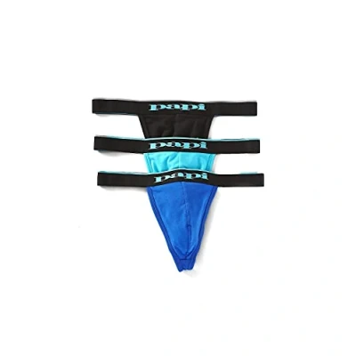 papi Men's 3 Pack Premium Fashion Cotton Active Stretch Thong, Black/Cobalt/Blue, Large