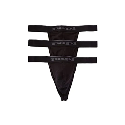 papi Men's 3 Pack Premium Fashion Cotton Active Stretch Thong, Black, Large