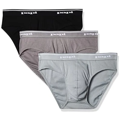 Papi Men's Cotton Low Rise Brief Pack of 3 Underwear, Black/Charcoal/Heather Grey, S