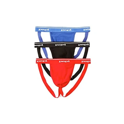 Papi Men's Premium Cheeky Butt flaunting Cotton Jock Strap, Underwear, Pack of 3, Red/Black/Blue, M UK