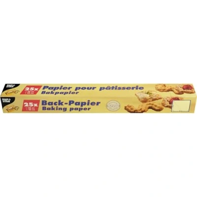 Ideal baking paper sheets for baking – Universal size for almost all baking trays, rectangular shape without cutting, can also be cut to any desired shape, can also be used for oven dishes. Environmentally friendly: product made of paper, renewable raw materials, refined, multiple uses possible. Saves time – no more annoying greasing and cleaning of sheets, the special finish prevents the paper from sticking. Safe use: both sides of the baking paper sheets can be used, heat-resistant up to 220 °C Contents: 25 x baking paper sheets in a roll, item in a display box with U-Lid