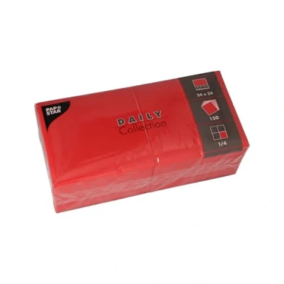 PAPSTAR, 150 Napkins Daily Collection 1/4 Fold 24 cm x Red