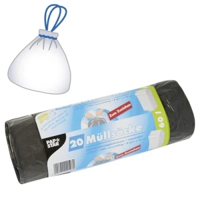 Suitable for swing top bins – professional bin liners for private households, business and catering. With drawstring – The load-bearing drawstring ensures clean and hygienic transport. Stable and opaque – the grey bin bags are tear-resistant, waterproof and protect the waste from prying eyes. Environmentally friendly - the bin liners are 100% recyclable. Box contents: 20 x rubbish bags 60 l with drawstring.